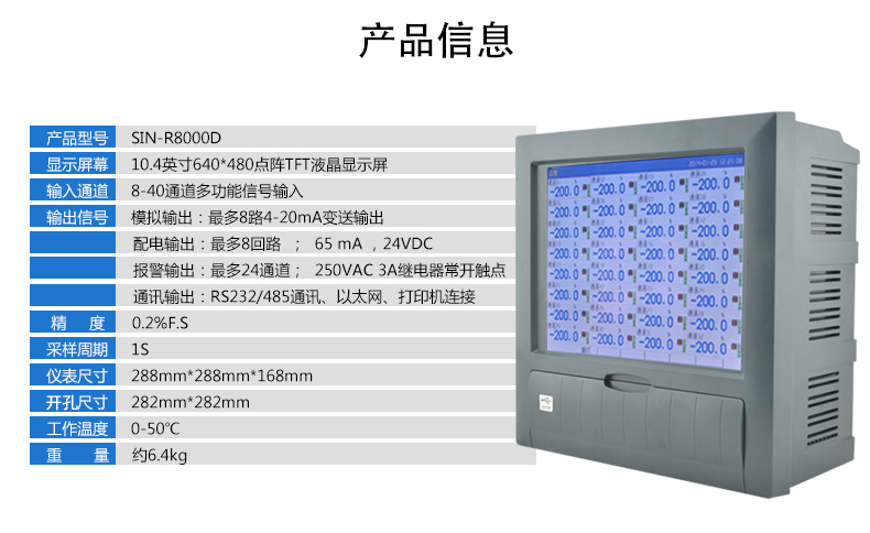 SIN-R8000D系列無紙記錄儀采用高速、高性能32位ARM微處理器,可同時實現40路信號采集,具有傳感器隔離配電輸出、繼電器報警輸出、變送輸出、流量積算、溫壓補償、累積報表、歷史數據轉存、打印以及遠程通訊功能。