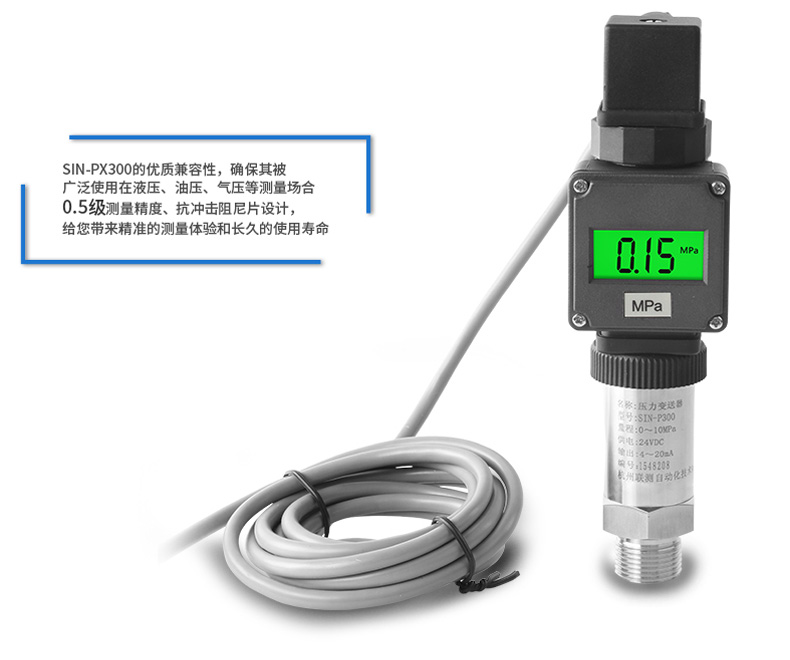 SIN-PX300型數(shù)顯壓力變送器采用無縫焊接結(jié)構(gòu),可批量化生產(chǎn),經(jīng)濟(jì)、可靠,具有良好的適應(yīng)性,可應(yīng)用于各種復(fù)雜的環(huán)境,該產(chǎn)品輸出形式多樣,壓力接口可提供定制,滿足您的使用需求。同時(shí)數(shù)顯壓力變送器帶有現(xiàn)場顯示功能,能夠更加直觀的顯示現(xiàn)場的壓力波動情況。廣泛應(yīng)用于工業(yè)自動化設(shè)備配套以及石油、化工、冶金、電力等控制領(lǐng)域。